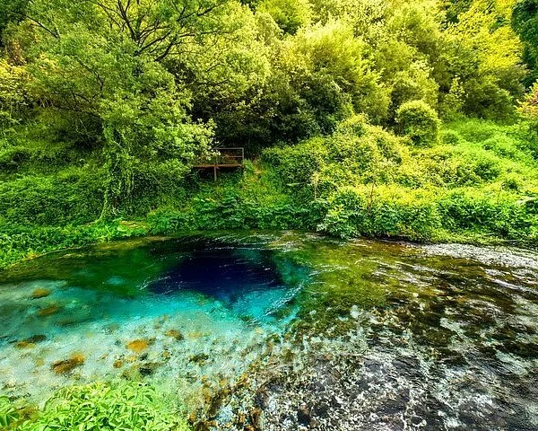 Rea RentalThe Blue Eye is a natural freshwater spring where icy, crystal-clear water rises from more than 50 meters deep. The intense dark blue center looks like a pupil, surrounded by bright turquoise water that forms the “iris.” That’s how it got its name.